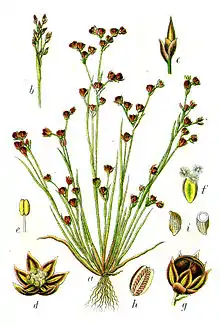 Juncus tenageia, called the sand rush, is a species of flowering plant in the genus Juncus, native to northwestern Africa, many of the Mediterranean islands, warmer parts of southern, central and eastern Europe, and western Asia including Turkey, the Caucasus region, and Kazakhstan.[2] It is typically found growing in wet, nutrient-poor rock, sand or clay-based soils, often in clay pits, old brickyards, and on the edges of roads.[3]