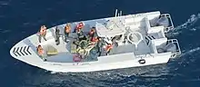 On 13 June, the U.S. military released a video which it said shows members of the Iranian Revolutionary Guard removing an unexploded mine from the side of Kokuka Courageous at 4.10pm local time.[58][59] The patrol boat shown in the video matched the model and dimensions of patrol boats used by the Navy of the Islamic Revolutionary Guard Corps, with an identical chevron pattern, center console, and anti-aircraft gun.[60][61] Iran called the U.S. accusations that it attacked the ships baseless.[62]