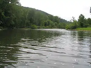 The Juniata River (/ˈdʒuːniˌɑːtə/) (pronounced joo-nee-ah-tah [1]) is a tributary of the Susquehanna River, approximately 104 miles (167 km) long,[2] in central Pennsylvania. The river is considered scenic along much of its route, having a broad and shallow course passing through several mountain ridges and steeply lined water gaps. It formed an early 18th-century frontier region in Pennsylvania and was the site of French-allied Native American attacks against English colonial settlements during the French and Indian War.