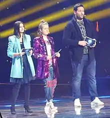 On 26 October 2018, it was announced that Eugene Perlin and Zinaida Kupriyanovich would be the main hosts of the contest, together with Helena Meraai in the green room.[9] Meraai is the fourth person under the age of sixteen to ever host the Junior Eurovision Song Contest, after Ioana Ivan in 2006, Dmytro Borodin in 2009 and Lizi Japaridze in 2017, and is also the second former participant to host an edition of the contest. Meraai previously represented Belarus in the 2017 contest, where she placed fifth with the song "I Am the One". Perlin is one of the main country's television presenters and was the Eurovision commentator between 2013 and 2019, whilst Kupriyanovich is a singer and artist who has participated in Belarus' national selections for the 2015 and 2016 Junior Eurovision Song Contests and latter represented the country at the 2019 adult contest. It was also announced that Denis Dudinsky and Anna Kviloria would host the opening ceremony.[10]