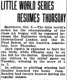 1924St. Paul Saints (none)AA5–4–1Baltimore Orioles (none)IL