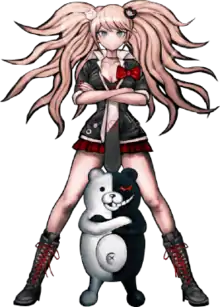 ![]() Junko behind Monokuma, as depicted in Danganronpa: Trigger Happy Havoc. | |