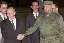In 1995 the Russian Ministry of Atomic Energy announced that it intended to resume the construction of Cuba’s reactors in 1998 with financing provided by an international consortium involving Siemens, Ansaldo and Électricité de France. However, the aforementioned companies dismissed the claims and it was reported that the announcement could have been part of a political stance against United States threat to cut aid to Russia.[16] The United States opposition on the project discouraged other countries following the Helms–Burton Act, which continued and strengthened the United States embargo against Cuba.[17] Estimates regarding the cost to finish the reactor ranged from $300 million to $750 million.[6] In 1997 Fidel Castro announced that Cuba was no longer interested in finishing the plant and would be seeking other energy alternatives. In December 2000 Russian President Vladimir Putin visited Cuba and offered to finish one reactor by investing 800 million dollars over the course of six years.[18] Castro subsequently announced that Cuba was no longer interested in completing the twin 440-megawatt reactor plant.[1] This announcement was made amid the failed attempt to resolve the problem of Cuba’s debt to the former Soviet Union, inherited by Russia.