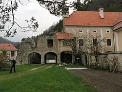 It was the site of a large charterhouse (Carthusian monastery), of which the parish church, a later mansion and a defence tower remain. The monastery was founded in the 12th century. The church is dedicated to Saint Maurice and belongs to the Roman Catholic Diocese of Celje.[6]