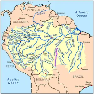 ![]() Amazon Basin with the Juruena River highlighted | |