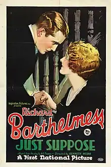 Just Suppose is a 1926 American silent drama film produced by and starring Richard Barthelmess with distribution through First National Pictures. Kenneth Webb directed Barthelmess and young Lois Moran star. The film is based on the 1920 Broadway play Just Suppose by Albert E. Thomas.[1][2][3]