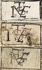 Only the larger set have the monogram, now agreed to read IVSTE-"Juste" (in reverse). An alternative interpretation has been that they refer to an obscure engraver, Jean Viset, about whom little is known except that he worked at Fontainebleau in 1536.[6] All the prints are rare - again like most School of Fontainebleau prints.