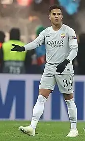 On 12 June 2018, Kluivert moved to Italian club Roma, following a telephone call made by Roma legend Francesco Totti to his father, for €18.75 million.[12][13] He became the fifth Dutch player ever to represent the Italian side.[14] Kluivert chose the number 34 shirt number at Roma as a support for his good friend and former teammate Abdelhak Nouri, who wore it at Ajax; Nouri suffered a career-ending cardiac arrhythmia attack in 2017.[15][16]