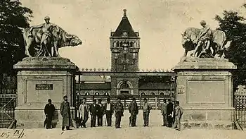 After the Austro-Hungarian Compromise, he was elected councillor in the Pest assembly on 19 May 1867. In that capacity, he was responsible for public health, animal health, and public sanitation issues, and also oversaw the operation of business associations, guilds, and the city tax office. On 1 August 1872, he played a major role in the establishment of the Central City Communal Slaughterhouse (Hungarian: Közvágóhíd).[5] The structure was preceded by years of preparation. A delegation led by Kamermayer made study visits to several cities, including: Berlin, Dresden, Munich, Frankfurt, Prague, and Vienna. He studied their facilities before making the necessary improvements and reforms in Pest. His political creed had become that of catching up to Western urban living standards. To achieve this he was convinced that the most important first step was the creation and centralized management of a public sanitation system.[6] The communal slaughterhouse building complex was planned by architect Hermann von der Hude and built by Gyula Hennicker. It contained thirty cutting chambers, indoor courtyards, leather drying attics, underground cooling chambers, a self-contained sewerage system, and a separate cattle market which was suitable for accommodating five thousand livestock and tens of thousands of poultry. Kamermayer personally wrote a draft of the communal sanitation regulations.[6]