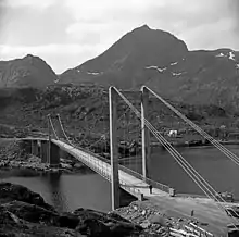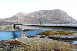 The Kåkern Bridge (Norwegian: Kåkern bru) is a cantilever road bridge that crosses the Kåkernsundet strait between the islands of Flakstadøya and Moskenesøya in the municipality of Flakstad in Nordland county, Norway. The 303-metre (994 ft) long Kåkern Bridge was opened in 2002. The Kåkern Bridge is one of the many bridges that connect the islands of the Lofoten archipelago to each other. The Fredvang Bridges are the only other bridge connection between Flakstadøya and Moskenesøya.[1][2]