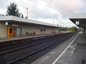 Köln-Holweide is a passenger railway station situated between the Holweide and Höhenhaus boroughs of Cologne, Germany. It is situated on the line from Köln-Mülheim to Bergisch Gladbach and served by the S11 line of the Rhine-Ruhr S-Bahn.[5]