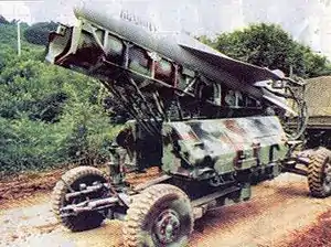 The K-15 Krajina (Serbian Cyrillic: К-15 Крајина) was a tactical ballistic missile displayed in Republic of Serbian Krajina in June 1995. It appeared to be a modified Soviet Navy P-15 Termit Anti-ship missile which was converted for use as a ballistic missile mounted on a S-75 Dvina launcher.[1]