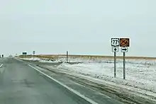 The Kansas Department of Transportation (KDOT) tracks the traffic levels on its highways, and in 2019, they determined that on average the traffic varied from 535 vehicles per day near the western terminus to 1,570 vehicles per day slightly west of Marion.[5] K-256 is not included in the National Highway System, which is a system of highways important to the nation's defense, economy, and mobility. K-256 does connect to the National Highway System at its eastern terminus.[6][7] The entire 1.645-mile-long (2.647 km) section of K-256 in Marion is maintained by the city.[8]