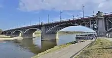Between 1891 and 1899 the company constructed many railway bridges all around the Russian Empire, spanning Volga River, Amu-Daria, Amur River, Neva River,[1] Nercha, Inga,[14] Northern Dvina, Khor, Iman and Bikin,[4] and many others.[1] The main clients were the Warsaw–Terespol Railway, Siedlce-Płock Railway, Warsaw–Kalisz Railway, Perm-Kotlas Railway, Southwestern Railways in the Ukraine and Ussuri Railway.[4] Most larger railway bridges constructed in Poland during that period were also built by K. Rudzki company, including Modlin Bridge across Bugonarew and the 1906 Zwierzyniec Bridge in Vilna.[15] Almost 20% of all bridges constructed in Russia in that period were built by Konstanty Rudzki and his engineers.[1]