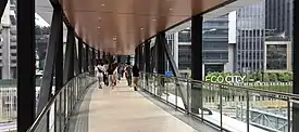 The pedestrian link bridge between KL Eco City and The Gardens towards the Abdullah Hukum station.
