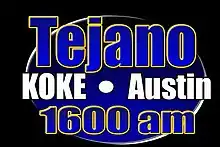 KOKE (1600 kHz) is an Austin, Texas AM radio station, licensed to Pflugerville, Texas, and is owned by Encino Broadcasting LLC. The station currently airs a Tejano format.