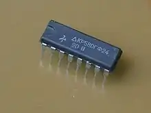 - ↑ Нефедов, А.В. (2002). Интегральные микросхемы и их зарубежные аналоги. Том 06. Серии К565-К599 [Integrated circuits and their foreign equivalents. Volume 06. Series K565-K599.] (in Russian). Moscow: ИП РадиоСофт. ISBN 5-93037-039-7. Retrieved 4 October 2016.