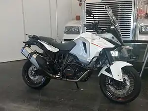 The KTM 1290 Super Adventure is a 1301 cc V-twin adventure touring motorcycle from the Austrian manufacturer KTM. KTM's first production year for this motorcycle was 2015. It was selected as the Cycle World best adventure bike of 2015.[1] The bike is marketed by KTM as a high performance adventure touring machine.