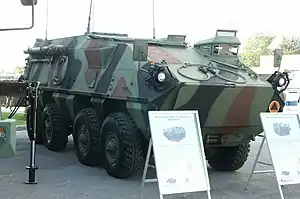 The KTO Ryś (KTO for Kołowy Transporter Opancerzony - lit. Wheeled Armored Vehicle; Ryś is Polish for Lynx) is 8x8 multi-role military vehicle produced by Wojskowe Zakłady Motoryzacyjne S.A. (formerly WZM No. 5), a Polish Armaments Group company. The vehicle was developed from the chassis and drive train of the OT-64 SKOT armored personnel carrier.