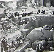 The Naqsh-e Rustam compound was first investigated and probed along with the Ka'ba-ye Zartosht structure by Ernst Herzfeld in 1923.[11] Additionally, the compound was probed by the Oriental Institute of the University of Chicago under the leadership of Erich Schmidt in several seasons between 1936 and 1939, finding important works like the Middle Persian version of the Great Inscription of Shapur I, which was written on the wall of the structure.[11]