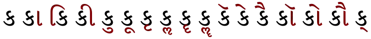 Like other Devnagari consonants, the inherent vowel of क can be altered by the addition of vowel marks, called "matras". In addition, several other diacritics can be used to alter the base consonant or append sounds to the syllable.