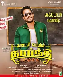 Kadaisi Bench Karthi (transl. Last Bench Karthi) is a 2017 Indian Tamil-language romantic comedy film directed by Ravi Bhargavan. The film features Bharath, Ruhani Sharma and Angana Roy. The venture began production in July 2016 and had a theatrical release on 27 October 2017.