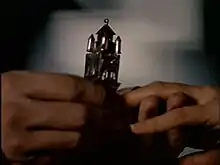 The idea to create a story centering on a Golem, however, had been proposed several times before by "probably every Jewish writer who's passed through", according to Gordon.[5] However, Gordon's unique take on the story, complete with an "emotional basis",[2] began to develop after he attended a wedding of two of his friends. During the ceremony, the officiating rabbi, who was a survivor of the Holocaust, used a real Jewish relic: the communal ring that was eventually featured in the episode.[2][6] The ring inspired Gordon to pen a "Romeo and Juliet-like" story that revolved around the power of love and the powerful desire to bring back loved ones from the dead.[2] As such, the episode's title is a reference to the Jewish mourning prayer service.[2]