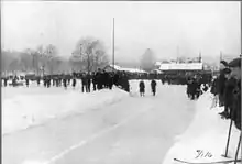 Because of the food shortage caused by the First World War, the police in Sandvika converted the former military dining hall as a distribution point for food.[12] The skating rink at Kadettangen opened in 1916.[13] The rowing club Bærum RK, founded in 1917, moved its headquarters from Kalvøya to Kadettangen in 1925, as it found the location on the island too isolated. The club house was also commonly used for revues and from 1935 it also hosted a kayak club. The rowing club fell into financial difficulties through the 1930s, and was forced to auction away their club house in 1936. The municipality won the bid, paying NOK 5000.[14] A new fire station was built in 1927.[11] For a period there was also a cement molding factory on Kadettangen, owned by Waldemar Michelsen.[15]