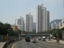 Tsui Chuk Garden (Chinese: 翠竹花園) is a Home Ownership Scheme and Private Sector Participation Scheme estate in Wong Tai Sin, Kowloon, Hong Kong, adjacent to Lion Rock. It consists of 14 residential buildings built in 1989 (Phase 1 and 2, Block 1 to 12) and 1991 (Phase 3, Block 13 and 14) respectively.[16] There is a bus terminus in the estate, which has a KMB bus route to MTR Wong Tai Sin station.[17][18]