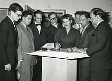 Kaija Siren with a model of Otaniemi Chapel in 1954.