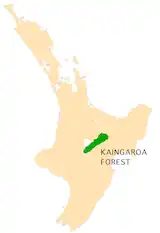 Kaingaroa Forest covers 2,900 square kilometres (1,100 sq mi) of the Bay of Plenty Region of New Zealand, and is the largest forest plantation in New Zealand, and the second largest in the Southern Hemisphere (after the 6,000 square kilometres (2,300 sq mi) Sabie/Graskop plantation in South Africa).[1] The forest stretches from Lake Taupō in the south to Kawerau to the north and has roughly 20 million trees. The headquarters of the forest are at the small settlement of Kaingaroa, Bay of Plenty, 50 kilometres (31 mi) southeast of Rotorua.[2] Prior to planting the area was a tussock and scrub plateau (ranging between 500 and 2,481 ft (152 and 756 m) high), formed on volcanic ash.[3]
