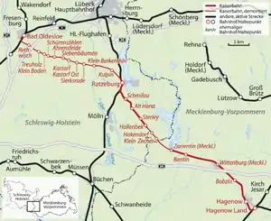 - ↑ "Mecklenburg: Bestrebungen zur Reaktivierung der Strecke zwischen Hagenow und Zarrentin" (in German). railfan.de. 1 September 2004. Retrieved 1 July 2013.