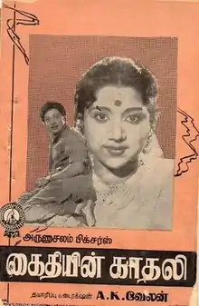 Kaithiyin Kathali (transl. Prisoner's Lover girl) is a 1963 Indian Tamil-language crime drama film directed by A. K. Velan. The film stars S. S. Rajendran and R. Vijayakumari.[1] It was released on 25 December 1963.[2]