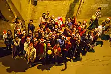 In the 13th century, in France, Germany, and particularly, Italy, under the influence of Francis of Assisi, a strong tradition of popular Christmas songs in regional native languages developed.[3] Christmas carols in English first appear in a 1426 work of John Awdlay, a Shropshire chaplain, who lists twenty five "caroles of Cristemas", probably sung by groups of 'wassailers', who went from house to house.[4] The songs now known specifically as carols were originally communal songs sung during celebrations like harvest tide as well as Christmas. It was only later that carols began to be sung in church, and to be specifically associated with Christmas.