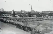 The history of the Kalevi Aed starts in the 19th century, when the land was owned by Jakob Johann von Gonsior and was rented out to a singing organisation named "Lootus".[4] In 1920, Lootus leaves the contract unextended and Kalev, who have been looking for a field to construct their stadium, takes advantage of the opportunity.[4] On 10 June 1923, a new stadium is opened and one month later, the Estonia national football team debuts on the field, drawing 1–1 with Latvia in front of 4,000 spectators.[5]