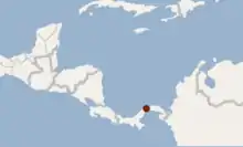 As of 2016, the species has not been documented outside of the type locality in Panama, Soberanía National Park.[1]
