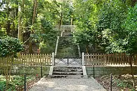 The Kameyama Tomb (竈山墓) is a circular-type (empun (円墳)) kofun, with a height of one meter and diameter of six meters, located on a hill with an elevation of nine meters. As it has been designated as an imperial tomb by the Imperial Household Agency, archaeological excavation has been prohibited.