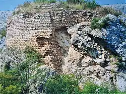 Kamičak Castle ([Kamichak]; Croatian: Utvrda Kamičak, in old sources Kamichech,[1] Kamichach,[2] Kamichack, Camichach) is a ruined medieval fortified structure on a rock at the top of the hill above the Krka River in the Krka National Park, Croatia. It is situated not far from the Brištane village in the administrative area of the Town of Drniš, Šibenik-Knin County. Located between the Visovac Lake and Roški Slap waterfall, it perks up like an eagle in unreachable eagle's nest[3] on the edge of a cliff. Once property of the powerful Nelipić noble family, the castle was captured and destroyed in 1522/23 by the Ottoman invaders, never to be rebuilt.
