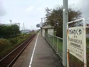 Kami-Wakuya Station is served by the Ishinomaki Line, and is located 3.6 rail kilometers from the terminus of the line at Kogota Station.