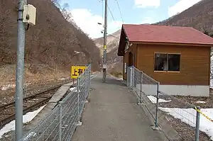 The station has one side platform serving a single ground-level bi-directional track. There is no longer a station building, but only a small shelter on the platform. The station is unattended.