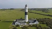 The Kampen Lighthouse is located on the geestland core of the German island of Sylt, south of Kampen. It is a white conical stone tower with a broad black band.[1]