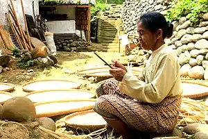 Kampung Naga is a traditional village which is inhabited by Sundanese traditional community that holds a strong tradition of preserving the way of life their ancestors. The differences are quite visible when compared with other communities surrounding Kampung Naga. The community are living in an atmosphere of a traditional simplicity and environmental wisdom. The Kampung Naga community traditionally maintain the knowledge of their ancestors and their traditional lifestyles in a close harmony with nature, which extends to their construction methods; using local materials of timber, stone, bamboo, thatched materials and palm leaves.[1]