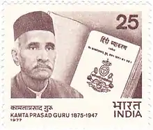 Kamta Prasad Guru (1875 16 November 1947) was an expert on grammar of Hindi language. He was the author of the book Hindi vyakarana. He was born in Sagar, which is today in Madhya Pradesh state in India. His Hindi grammar book has been translated into many foreign languages. Kamta Prasad Guru died in Jabalpur. The Government of India issued a commemorative stamp in his honour in 1977.