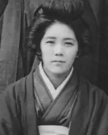 Kane's early childhood was during the last years of the Meiji period, which ended when she was nine, in 1912.[12][13] Kane married her cousin Hideo Tanaka in 1922,[14] with whom she had two sons and two daughters.[15] The couple also adopted their niece, the second daughter of Hideo's sister.[16][8] Kane's eldest daughter died shortly after birth and her second daughter died at the age of one in 1947, while her adoptive daughter died in 1945 at the age of 23 of an unspecified illness.[9][12][17] The couple worked in a store selling shiruko and udon noodles.[18][19]