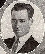 William A. Scroggs, a student at Oklahoma A&M College, sought to establish an organization that would "bind [dear] friendship together indefinitely" and unite members across colleges and universities.[8][9] After some initial planning, he consulted band president A. Frank Martin and Bohumil Makovsky, director of bands at Oklahoma A&M, both of whom agreed to help with the creation of the fraternity.[8] From Makovsky's band, 10 members were selected as the first members of Kappa Kappa Psi: William Alexander Scroggs, Andrew Franklin Martin, Raymond David Shannon, Clyde DeWitt Haston, Clayton Everett Soule, Carl Anderson Stevens, William Houston Coppedge, Dick Hurst, George Asher Hendrickson, and Iron Hawthorne Nelson.[8] The founders accepted chemistry professor Hilton Ira Jones' suggestion to name the fraternity "Kappa Kappa Psi."[8] It was organized on November 27, 1919, and Scroggs was unanimously elected to serve as the President.[9] Legal organization was completed on March 5, 1920, when the fraternity received its charter from the state of Oklahoma.[10] The formal organization of the fraternity was celebrated on either March 23 or 25, 1920, with the initiation of the first membership class and a banquet.[11]