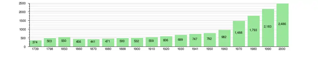 As of 2000, there were 991 private households in the municipality, and an average of 2.5 persons per household.[8] There were 245 households that consist of only one person and 81 households with five or more people. Out of a total of 1,000 households that answered this question, 24.5% were households made up of just one person and there were 11 adults who lived with their parents. Of the rest of the households, there are 325 married couples without children, 356 married couples with children There were 45 single parents with a child or children. There were 9 households that were made up of unrelated people and 9 households that were made up of some sort of institution or another collective housing.[9]