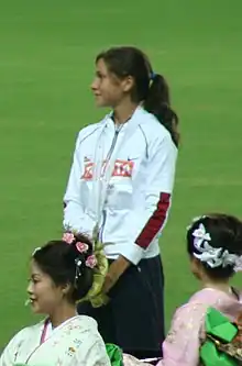Kara Goucher (born Kara Grgas[2] on July 9, 1978) is an American long-distance runner. She was the 10,000 meters silver medalist at the 2007 World Championships in Athletics and represented the USA at the 2008 Beijing Olympics and 2012 London Olympics.[3] She made her marathon debut in 2008 and finished third the following year at the Boston Marathon.