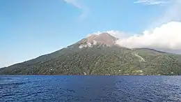 Karangetang (also known as Api Siau) is a volcano on the north side of Siau Island off the coast of Sulawesi, Indonesia. The island is inhabited by 22,000 people.[2] It is one of the most active volcanoes in Indonesia having erupted 41 times since 1675. A pyroclastic flow in 1997 killed three people.[3]
