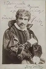 ![]() Karel Hašler in one of his roles at the National Theatre, Prague, around 1904. | |