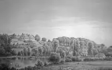 Blixen lived most of her life at the family estate Rungstedlund, which was acquired by her father in 1879. The property is located in Rungsted, 24 kilometres (15 mi) north of Copenhagen, Denmark's capital.[93] The oldest parts of the estate date to 1680, and it had been operated as both an inn and a farm. Most of Blixen's writing was done in Ewald's Room, named after author Johannes Ewald.[94]